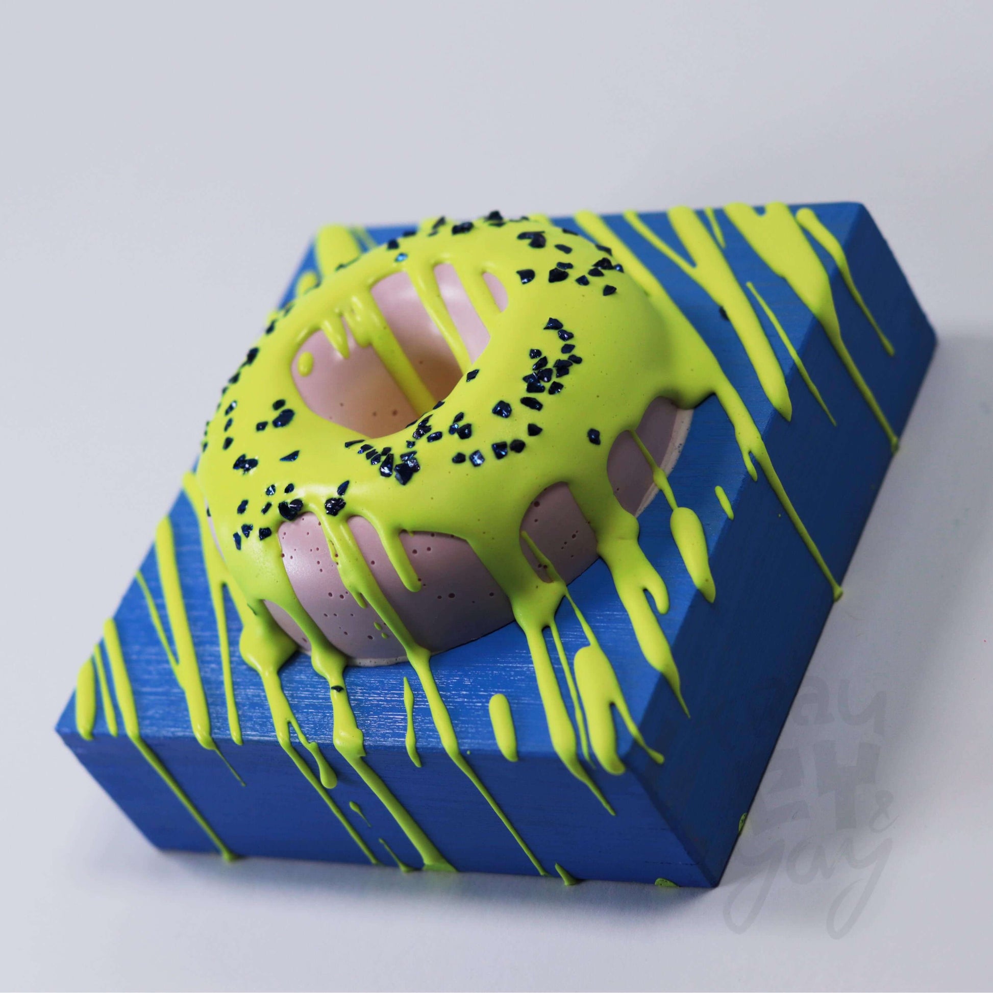 10×10×5,5 DonART gelb blau auf Massivholz