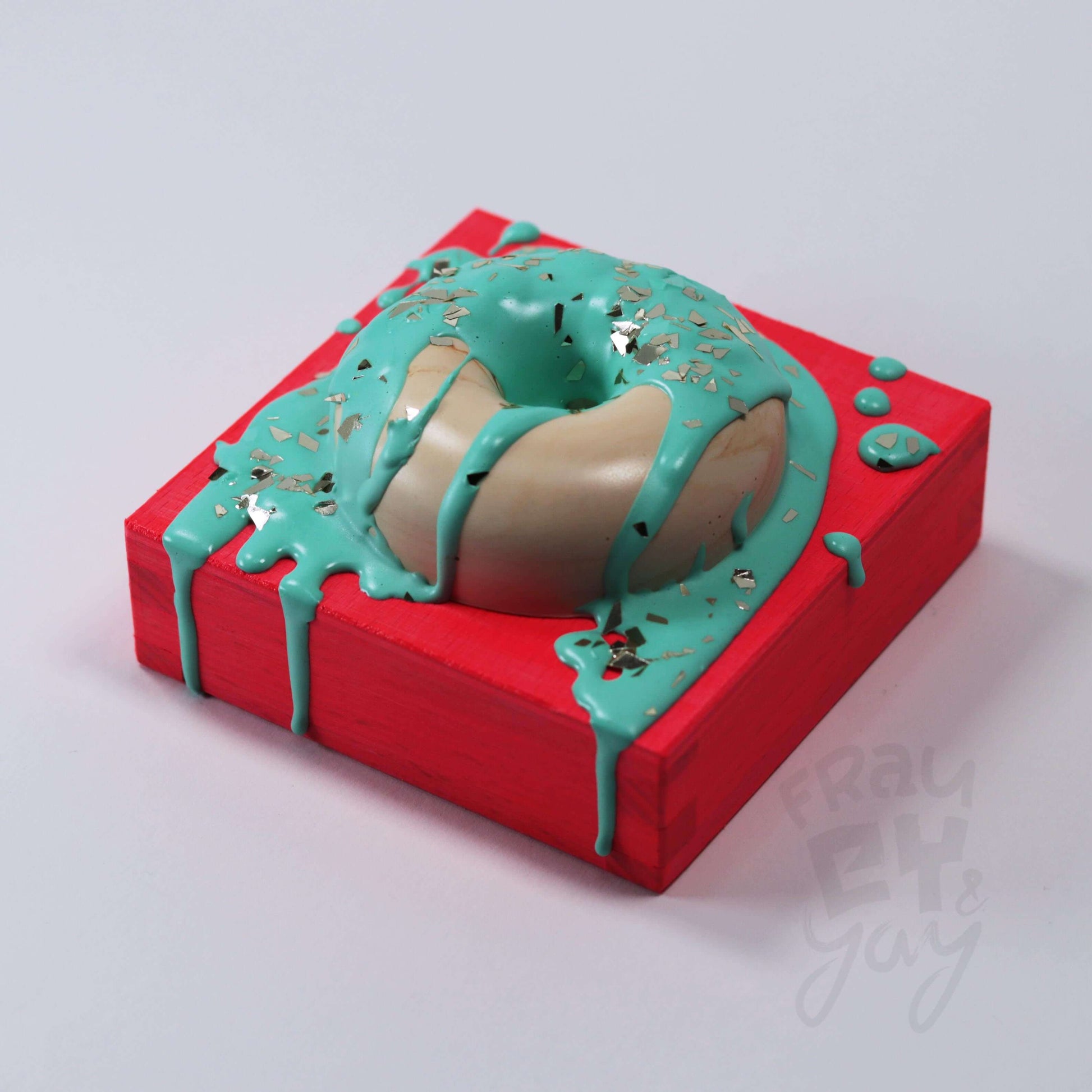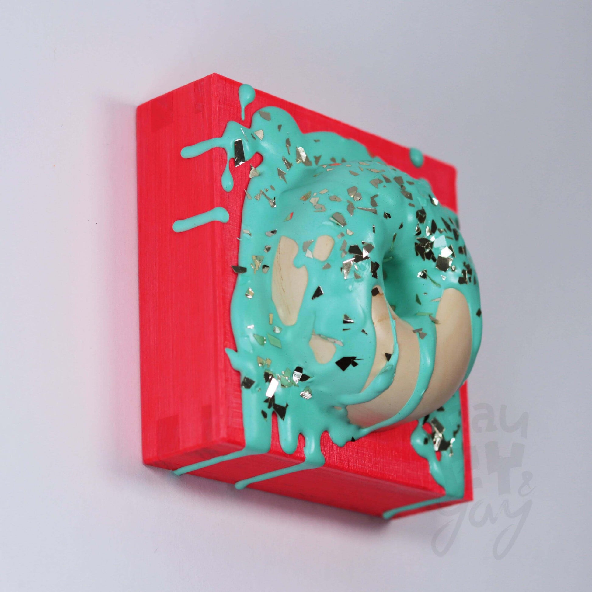 10×10×5,5 DonART mint neonrot auf Massivholz