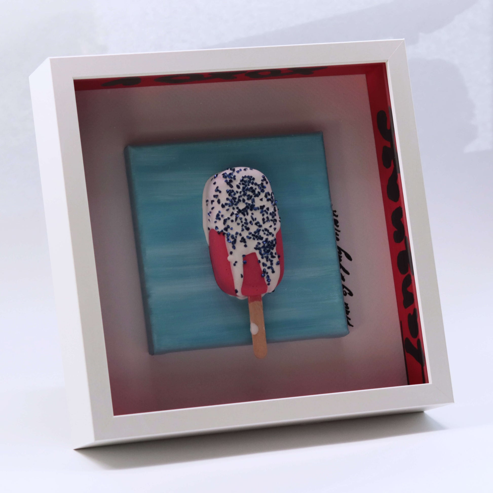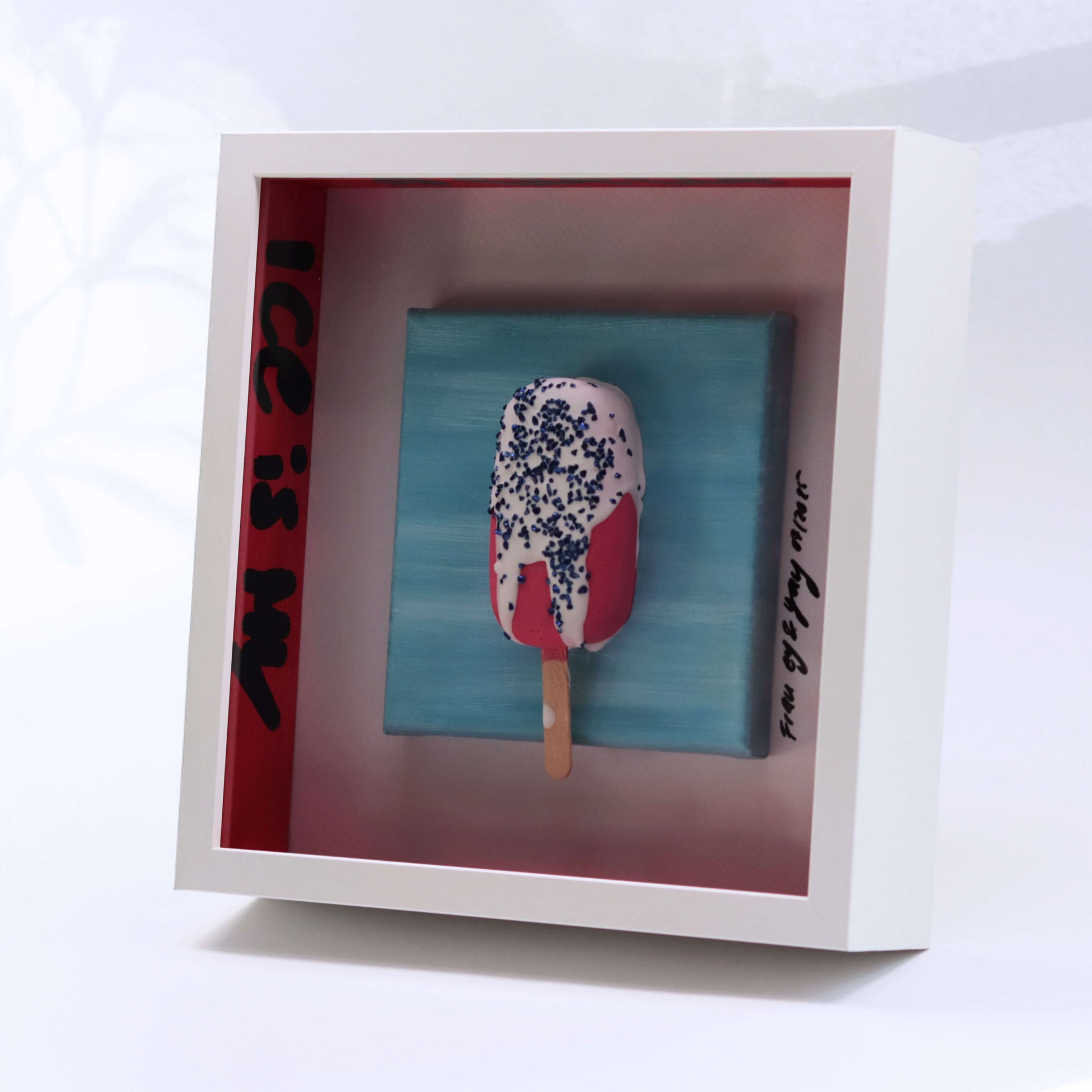 3D Eis Skulptur im Schaukasten Rahmen auf Leinwand.