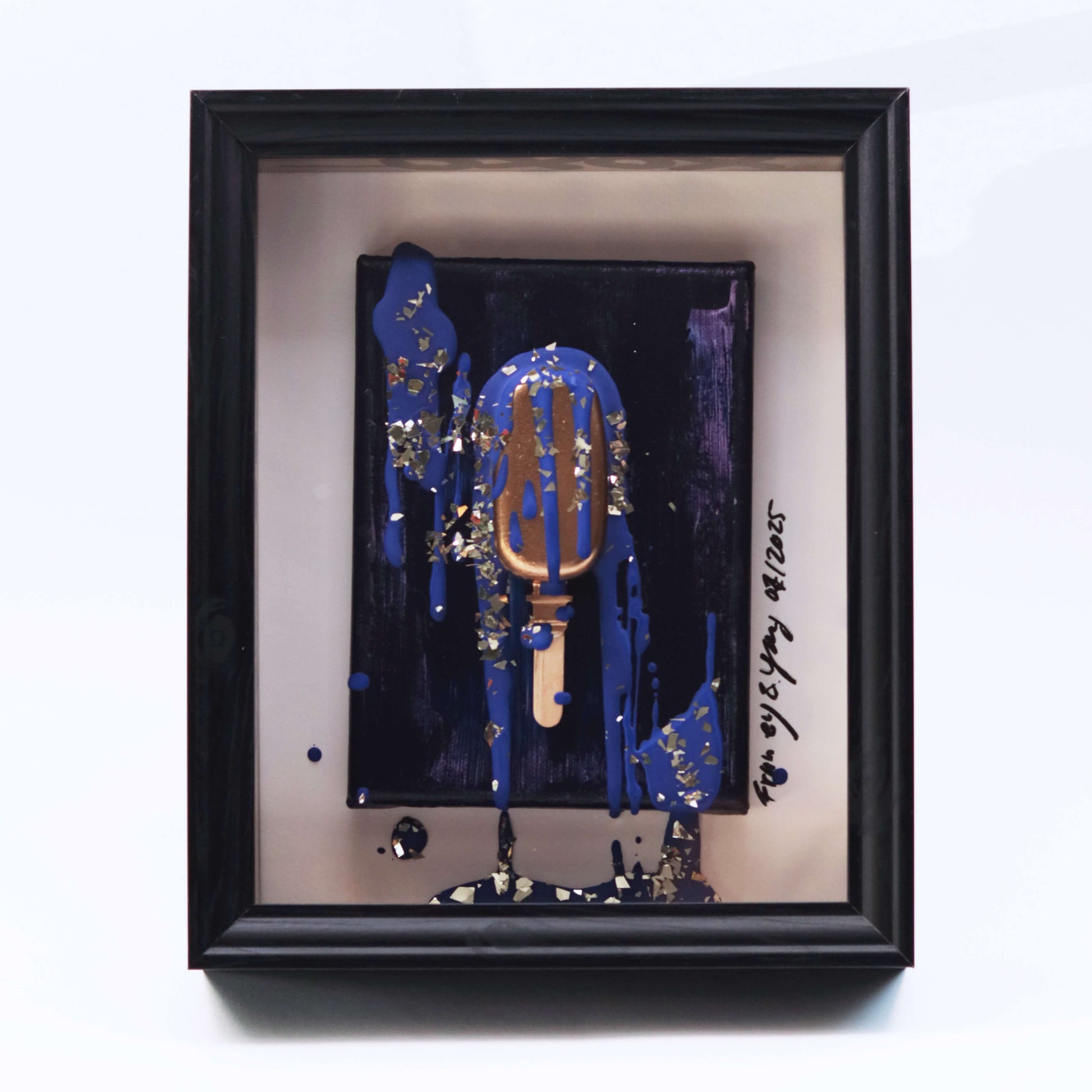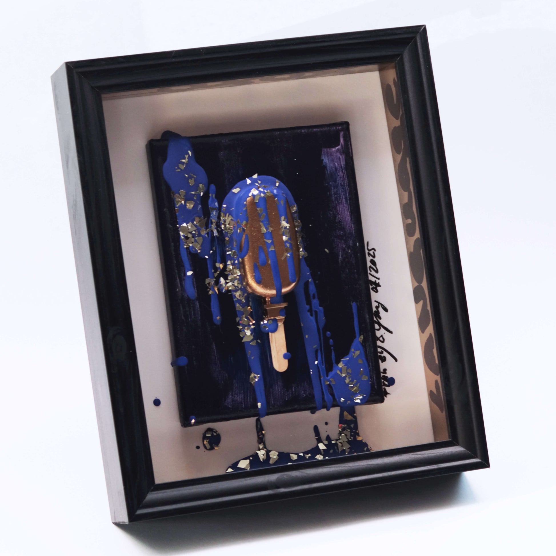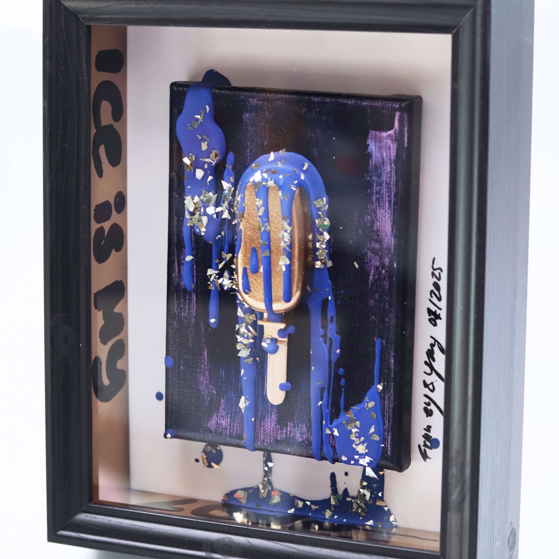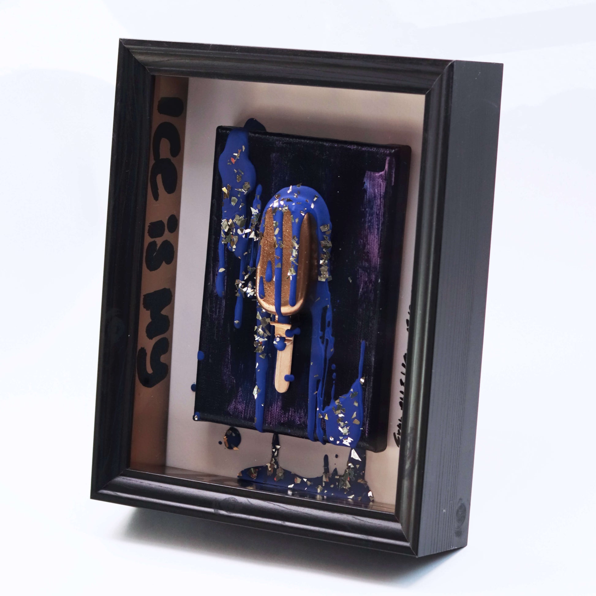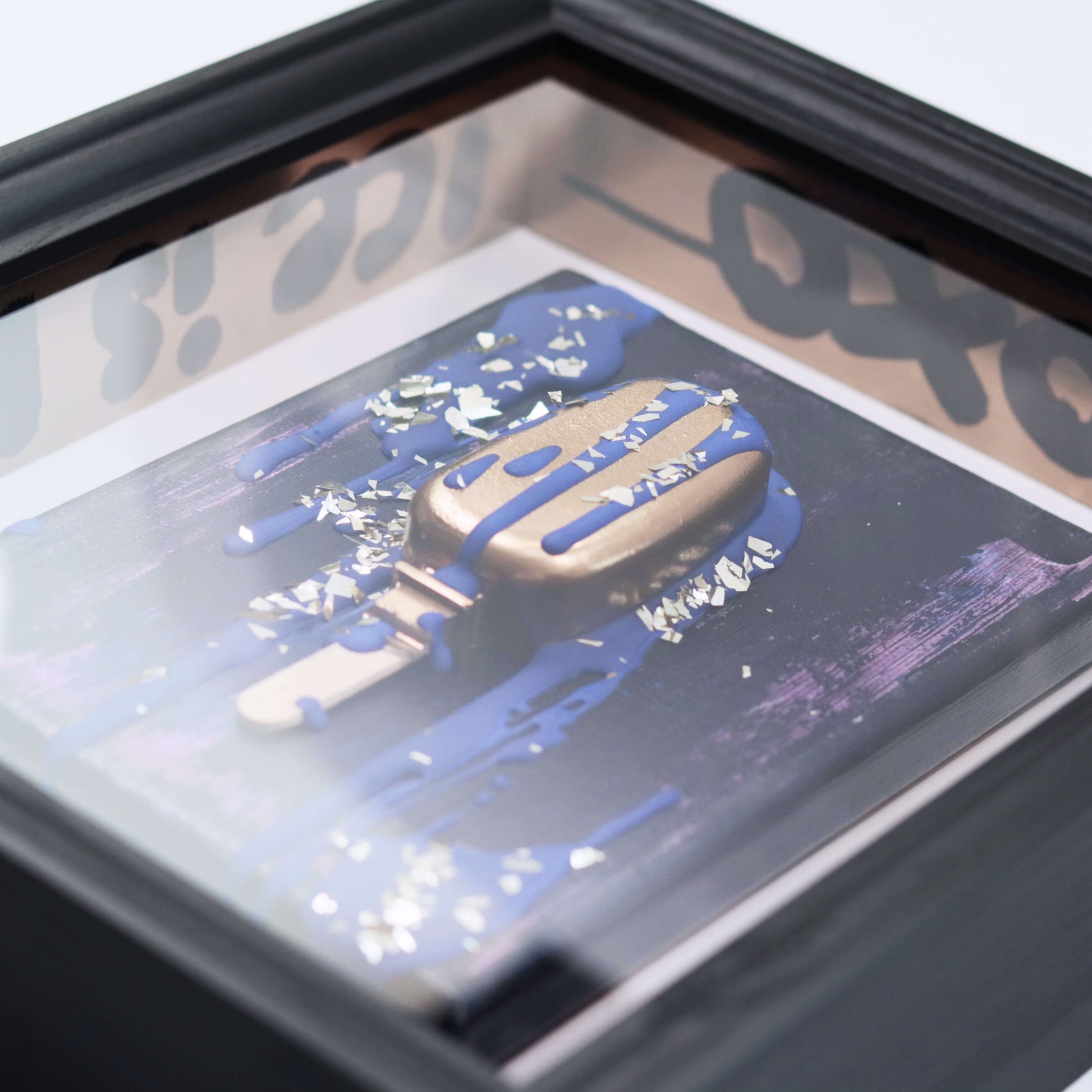 3D Eis Skulptur im Schaukasten Rahmen auf Leinwand.