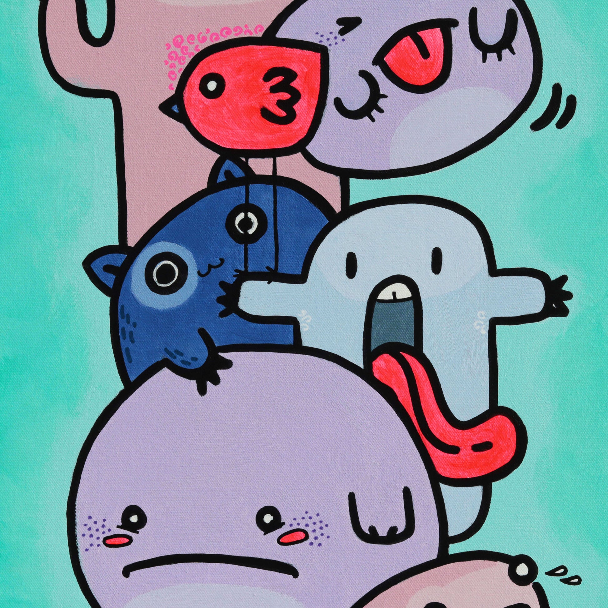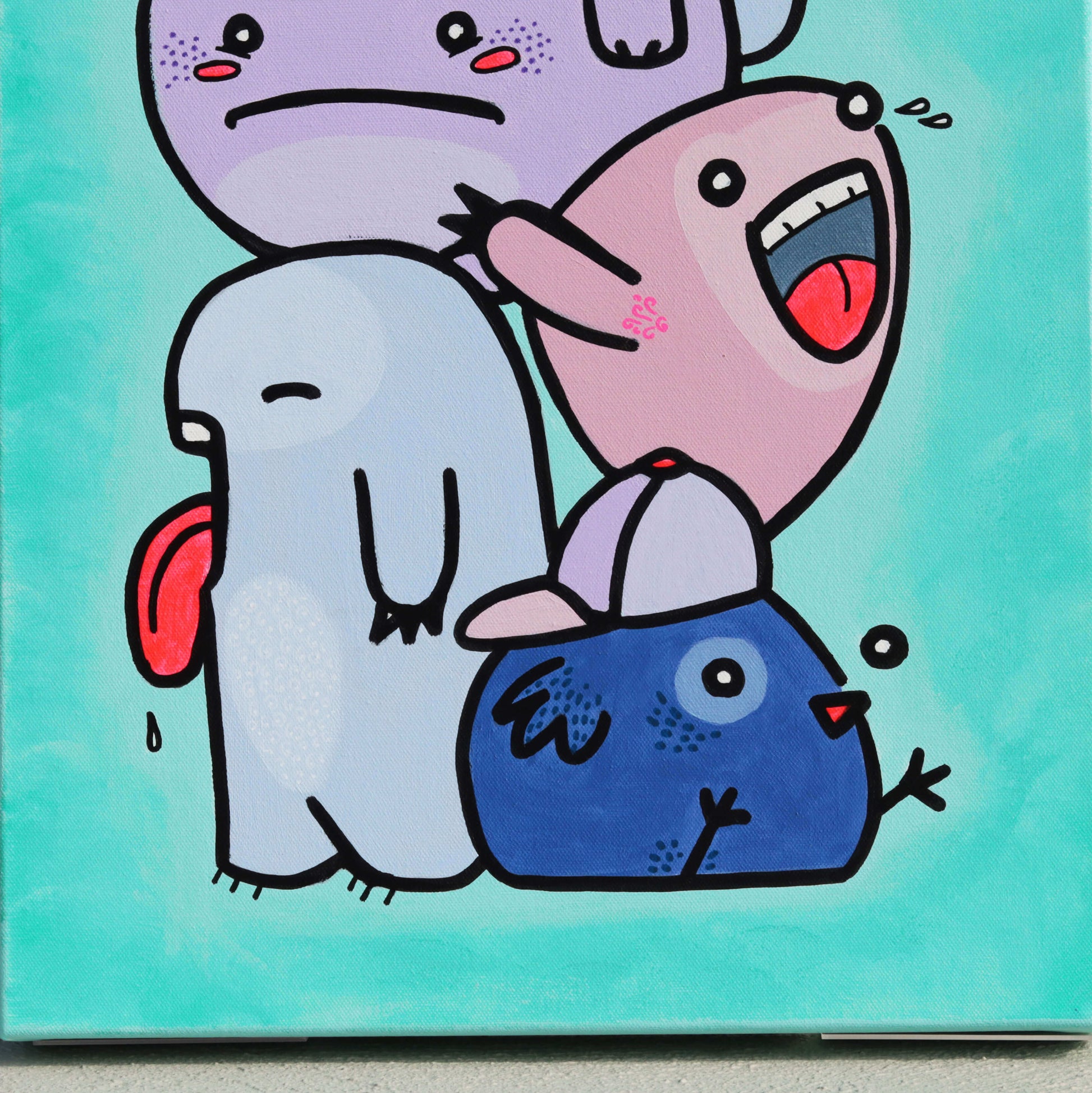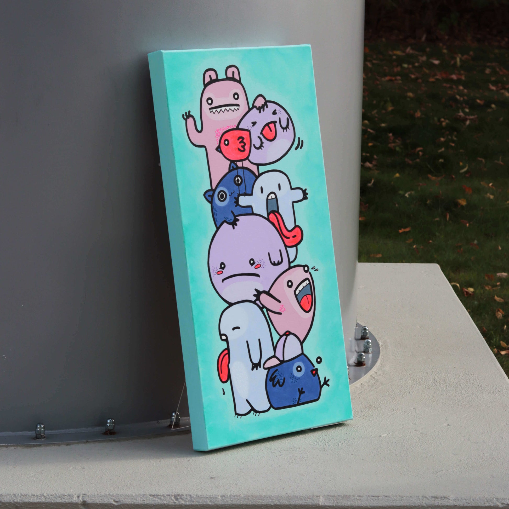 "Meine Monsterchen" Acryl auf Leinwand 80x40x5 3D Leinwand extra dick. Original Kunstwerk, Unikat. Ungerahmt und Schutzversiegelt.
