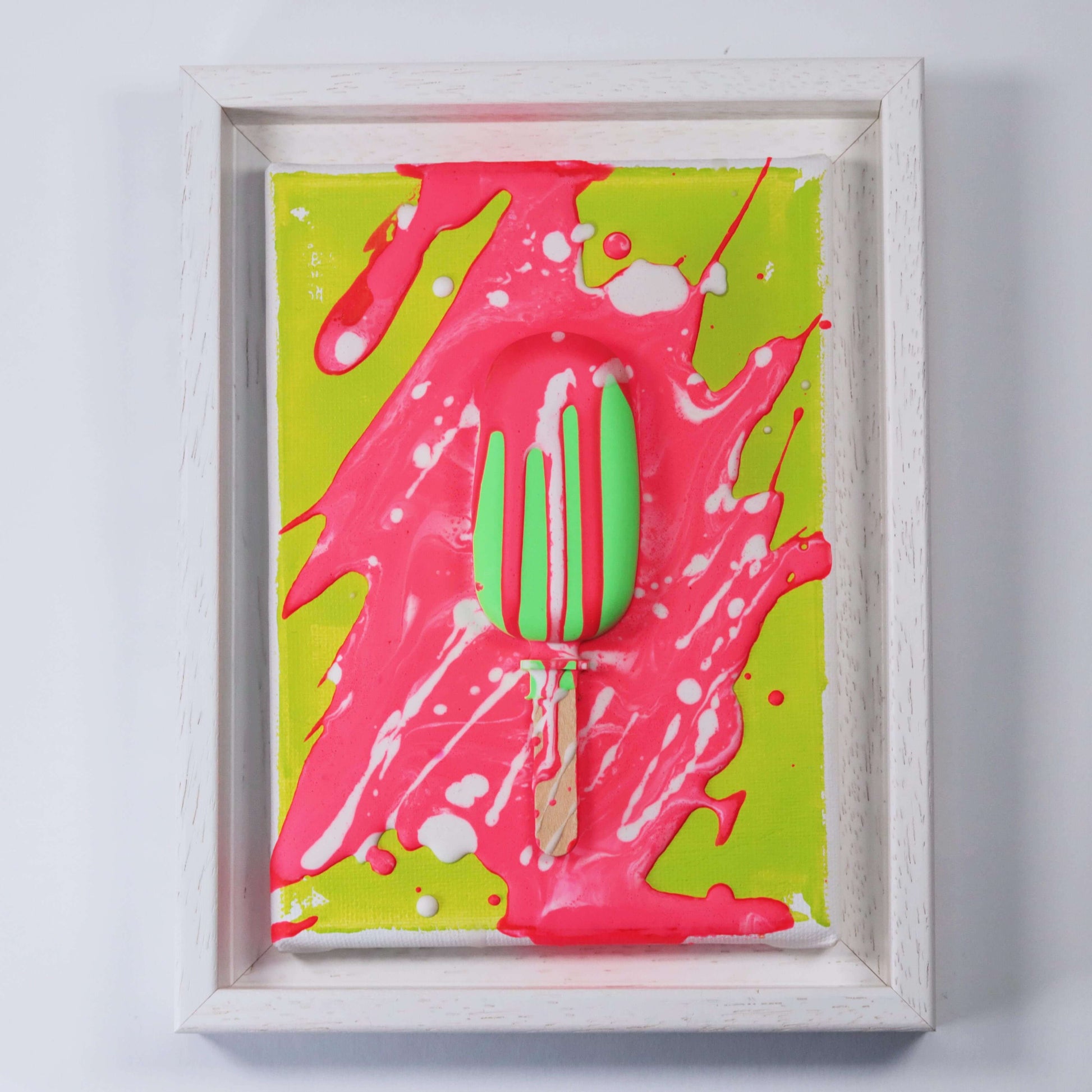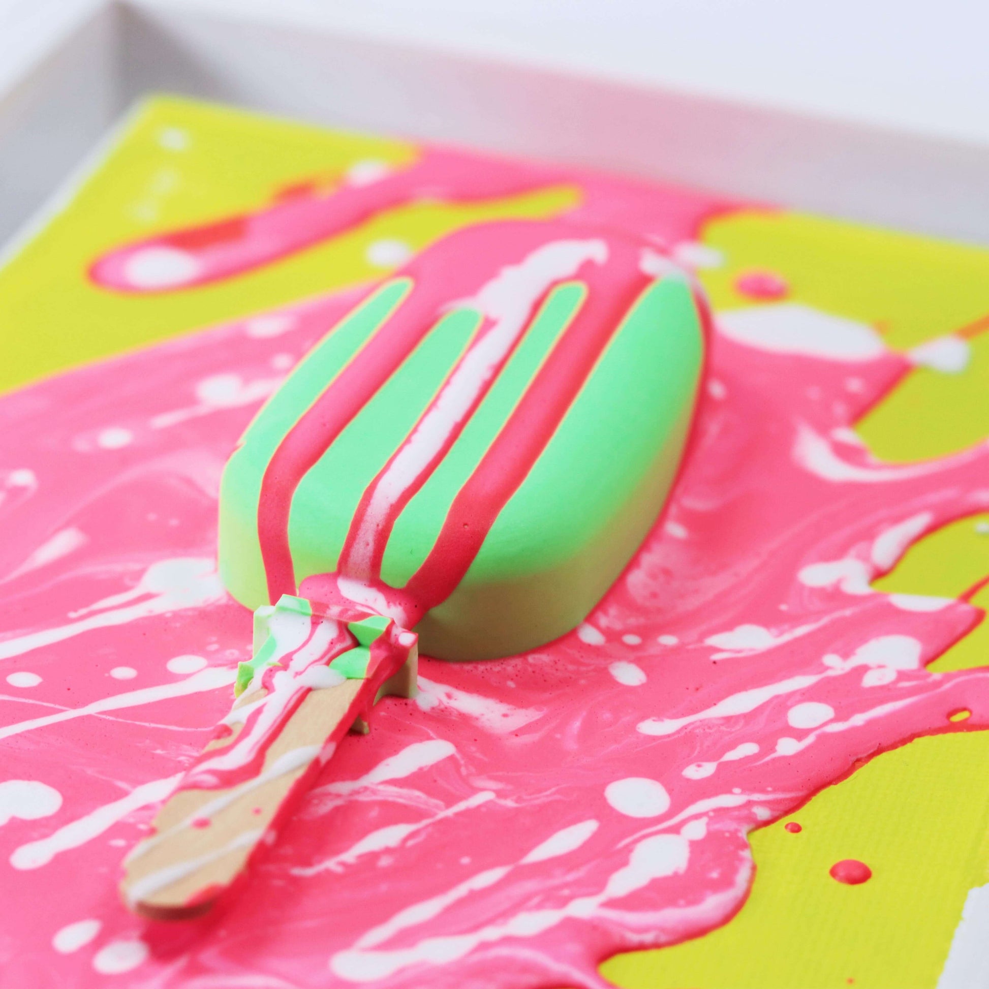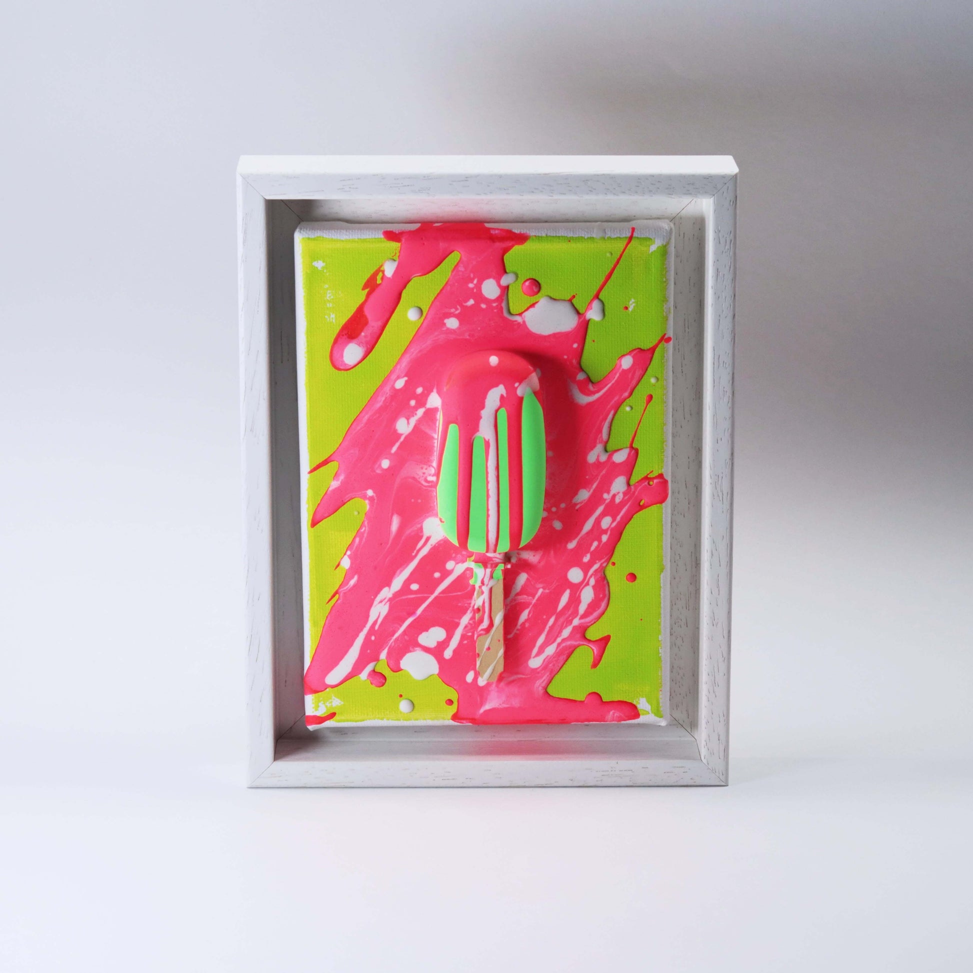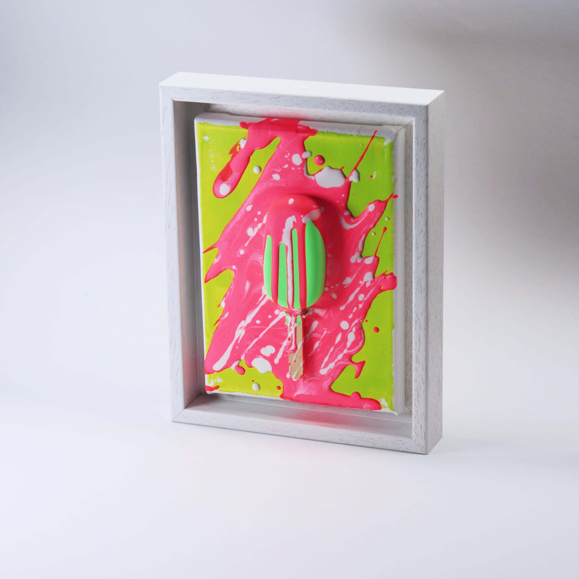 Aus Gießpulver gegossenes 3D Eis, auf Leinwand im Schattenfugenrahmen.