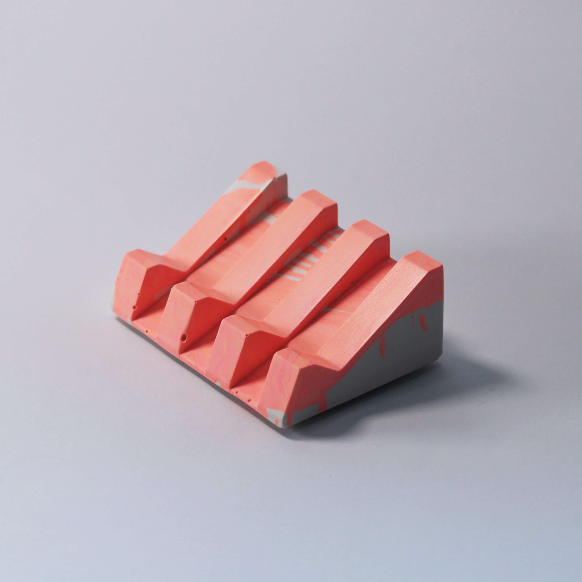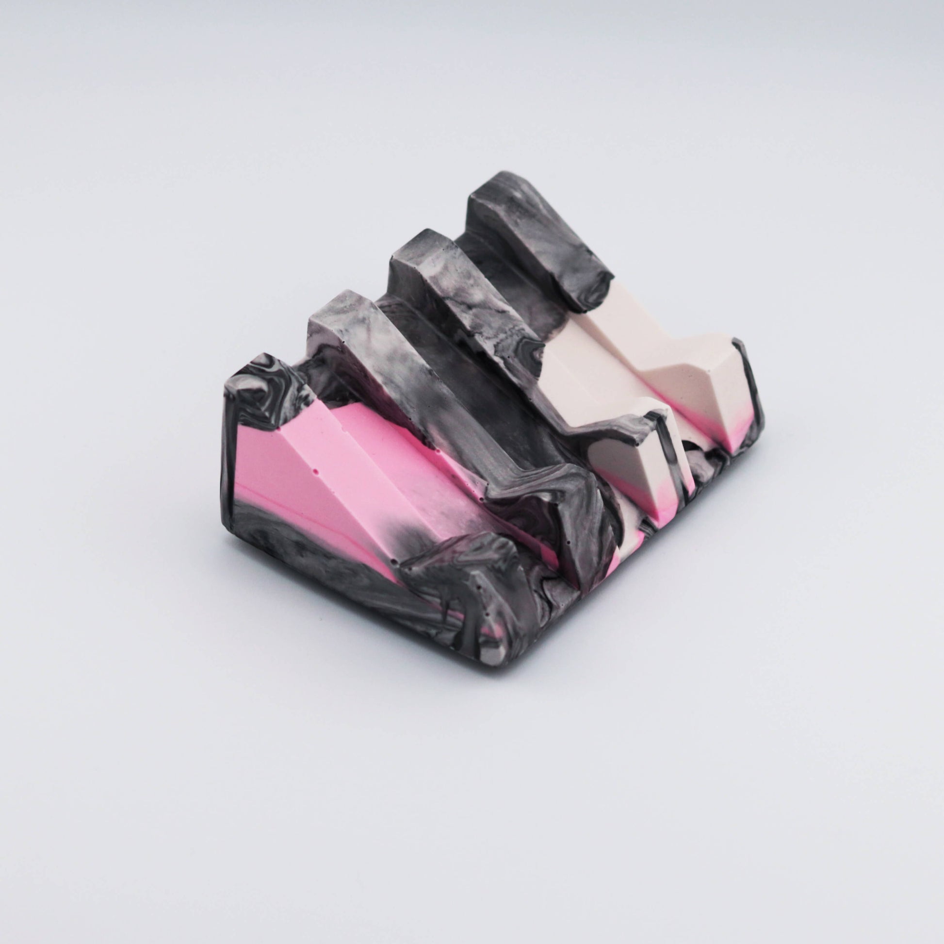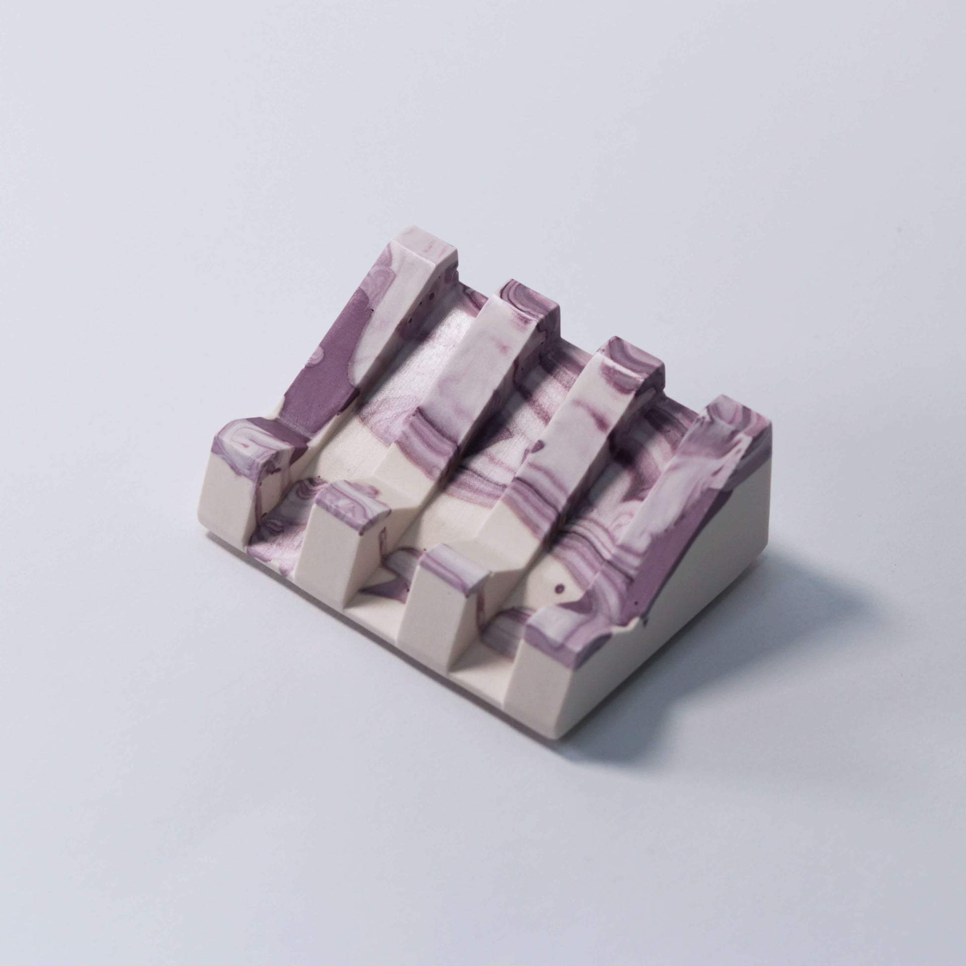 Die Seifenschale besteht aus einem speziellen Gießpulver auf Acrylharzbasis. Sie wurde gegossen, an der Luft gehärtet, sorgfältig geschliffen und mit einem Sealer veredelt.
