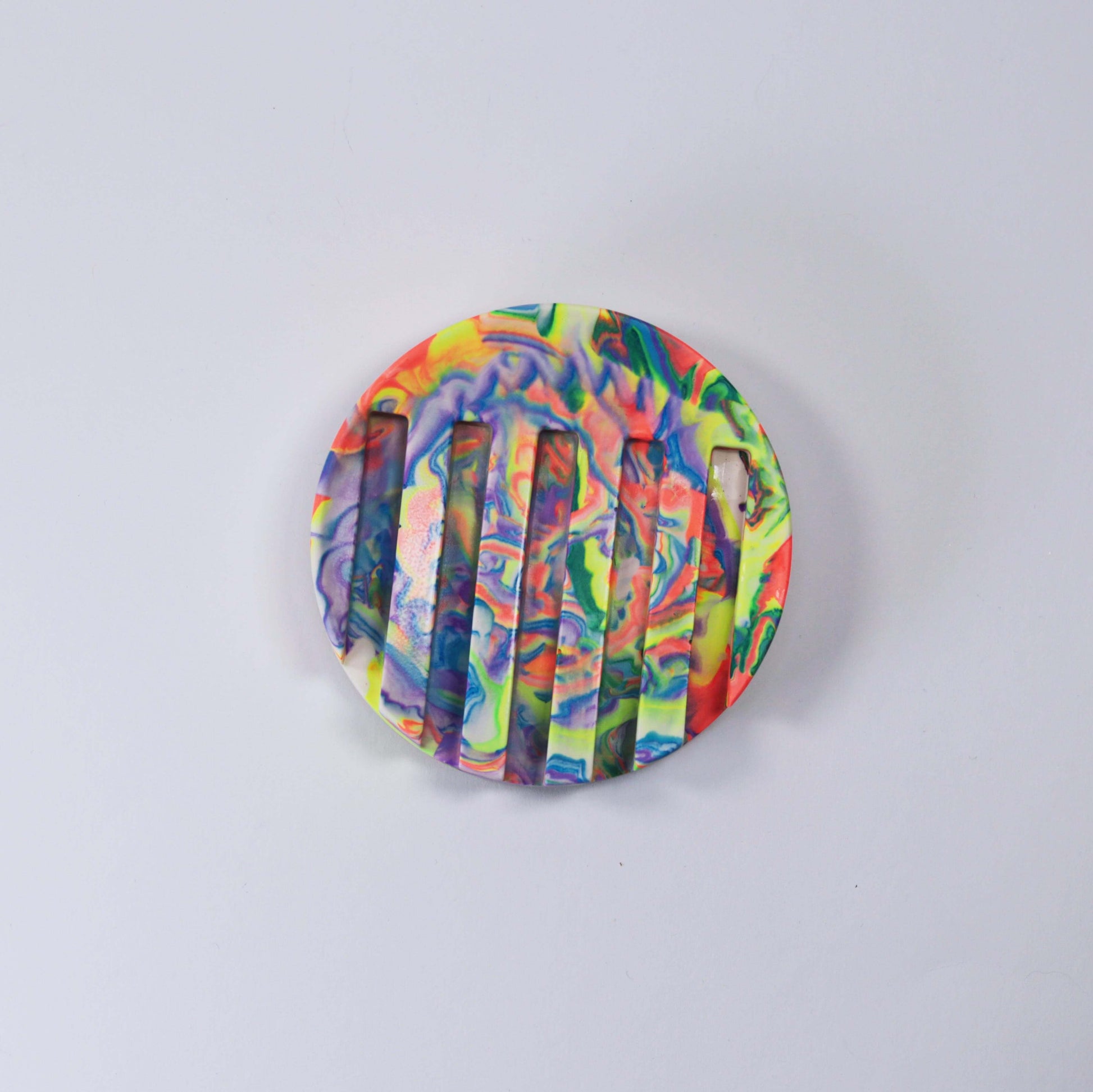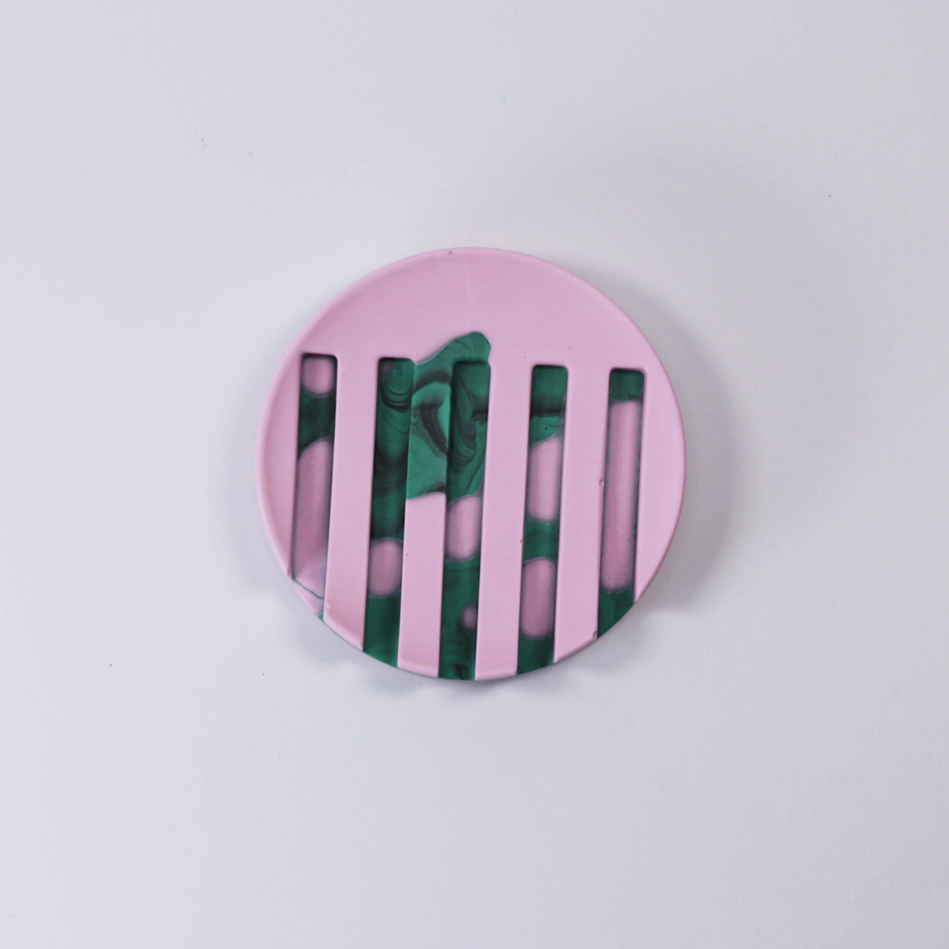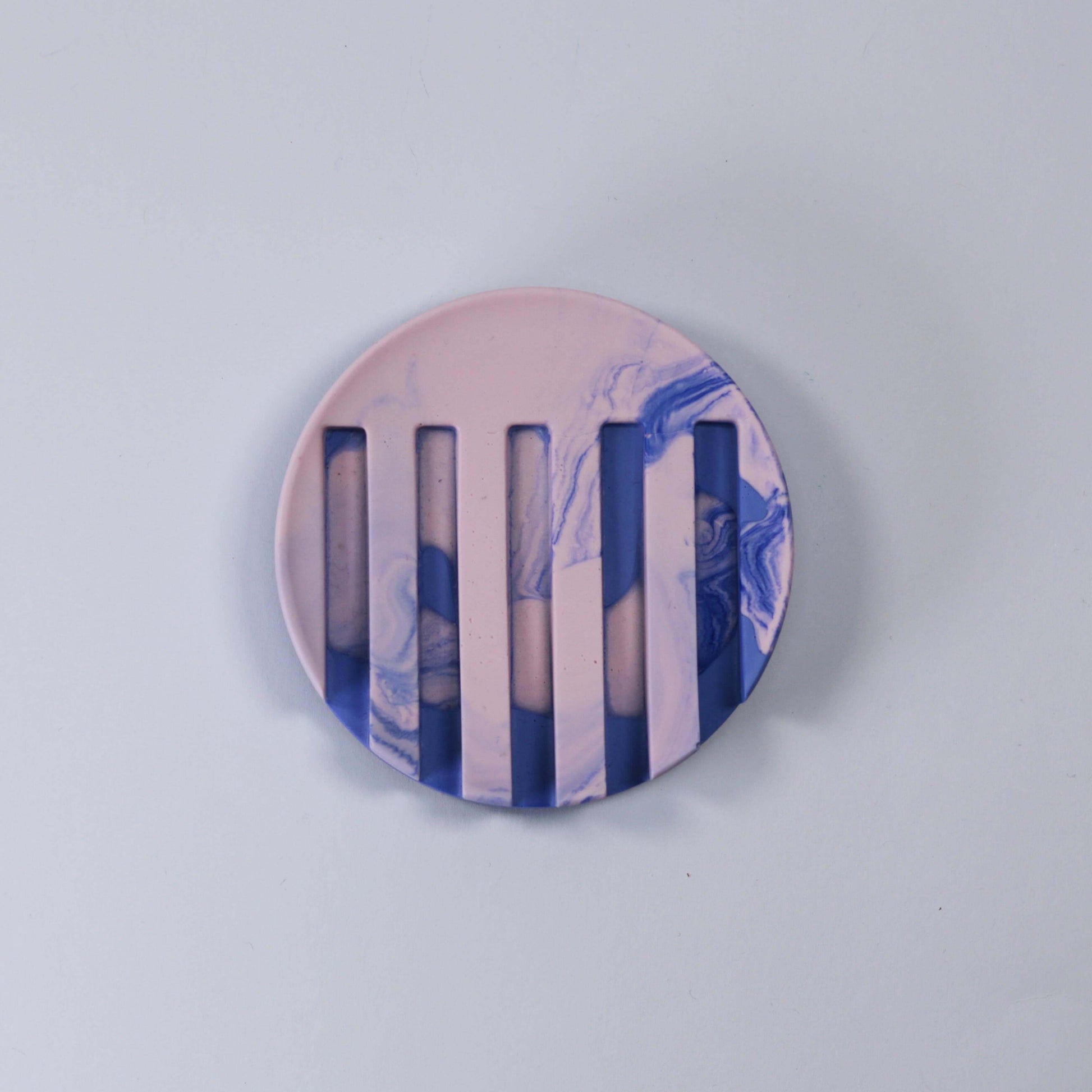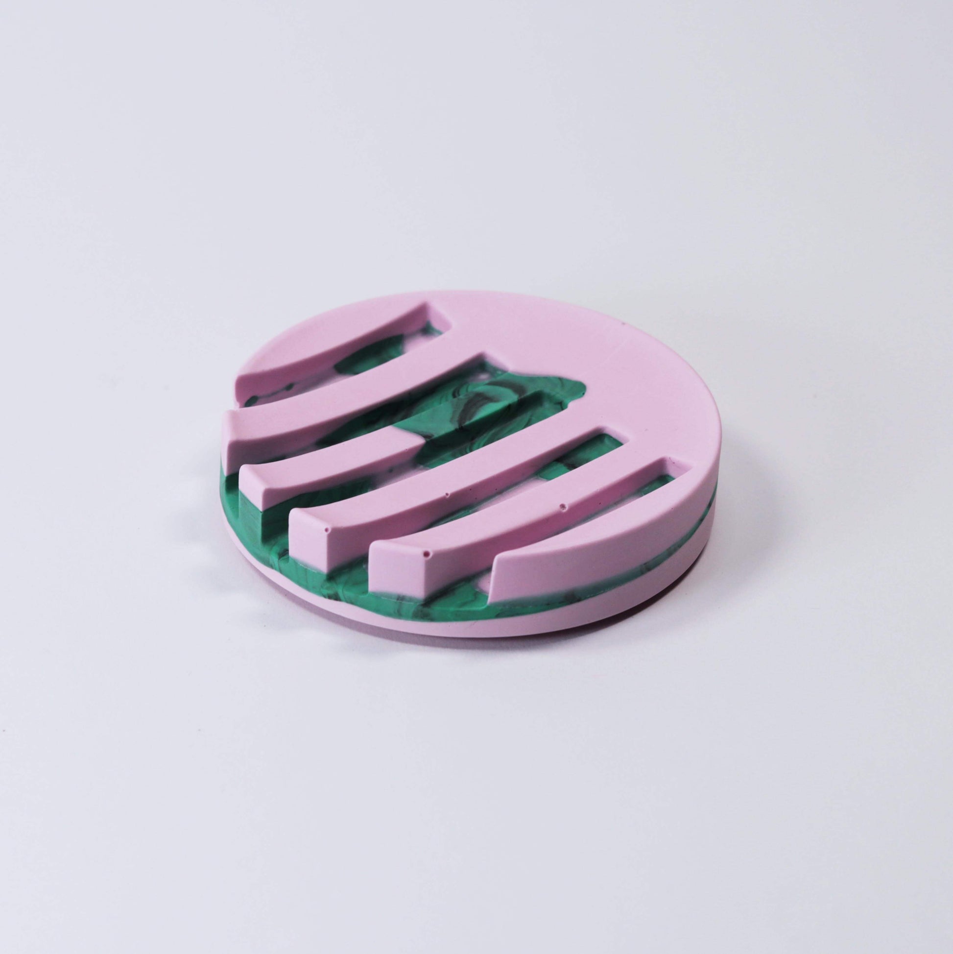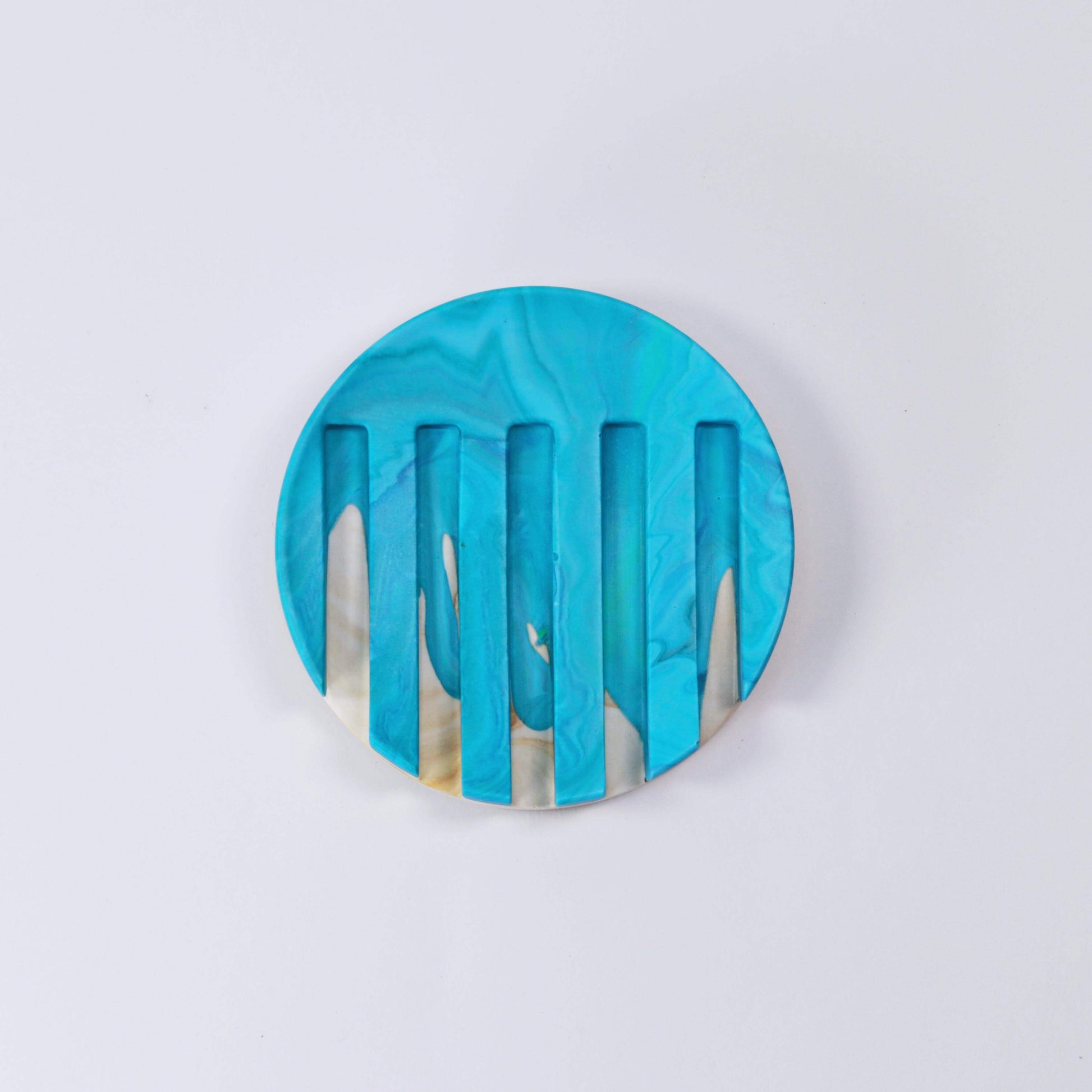 Die Seifenschale besteht aus einem speziellen Gießpulver auf Acrylharzbasis. Sie wurde gegossen, an der Luft gehärtet, sorgfältig geschliffen und mit einem Sealer veredelt.
