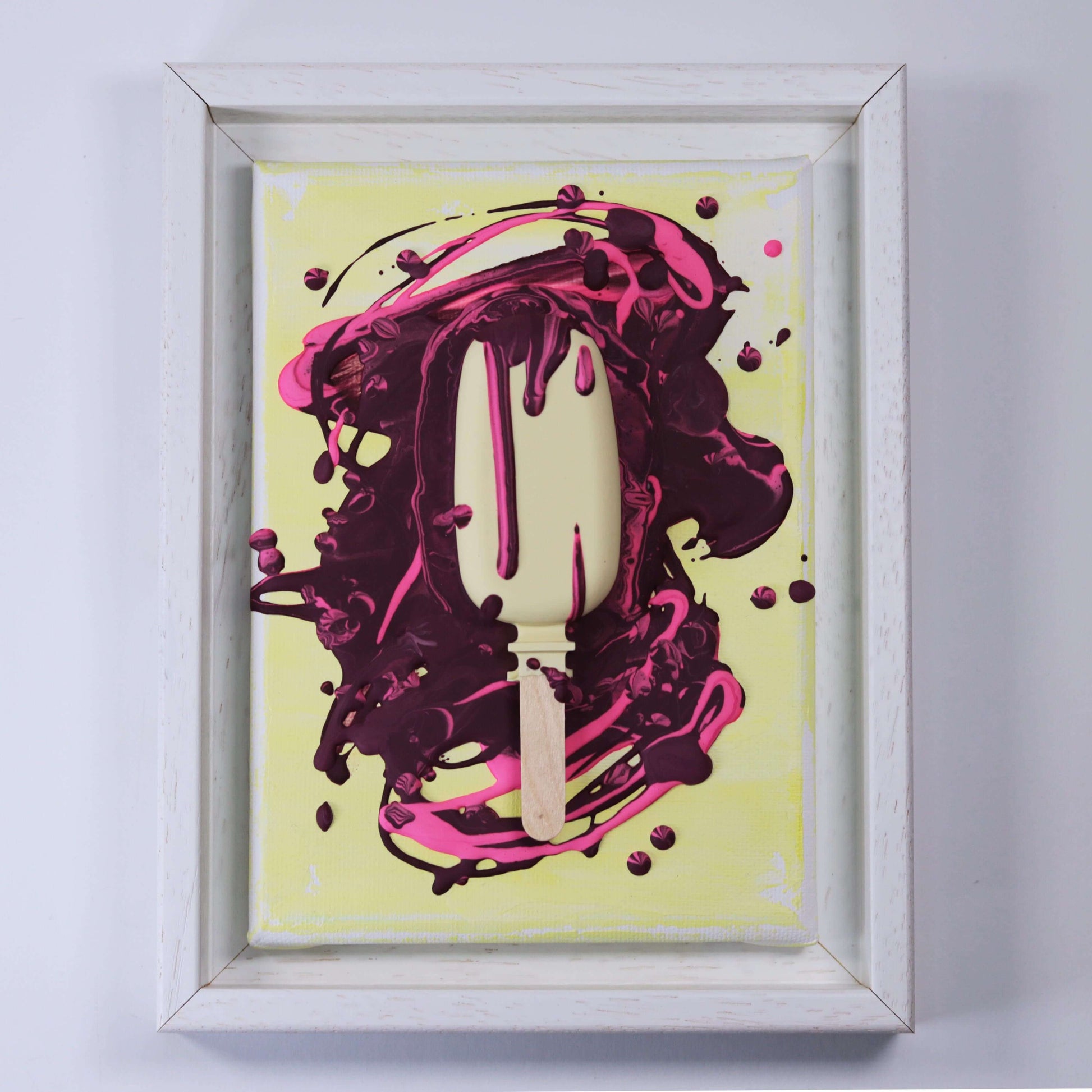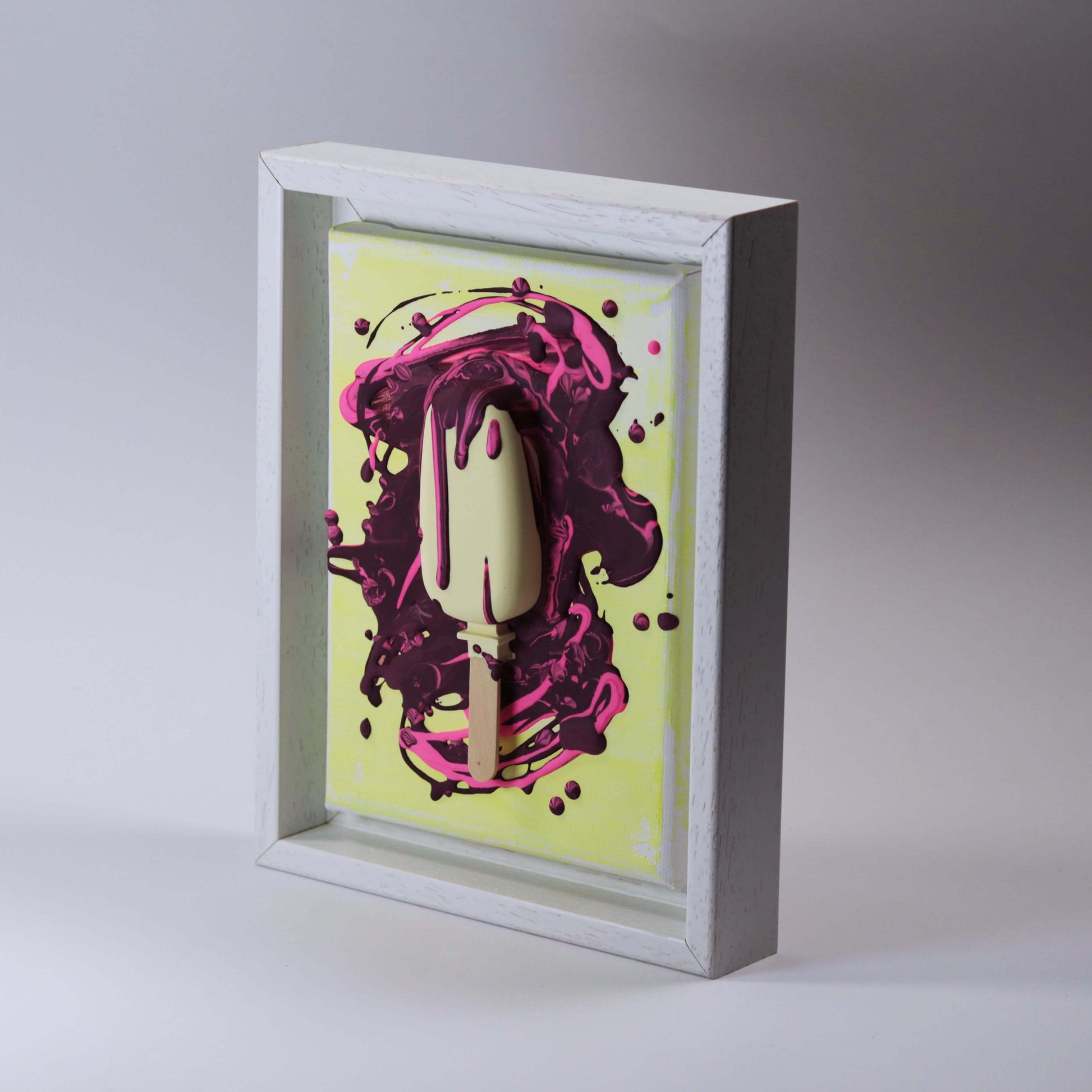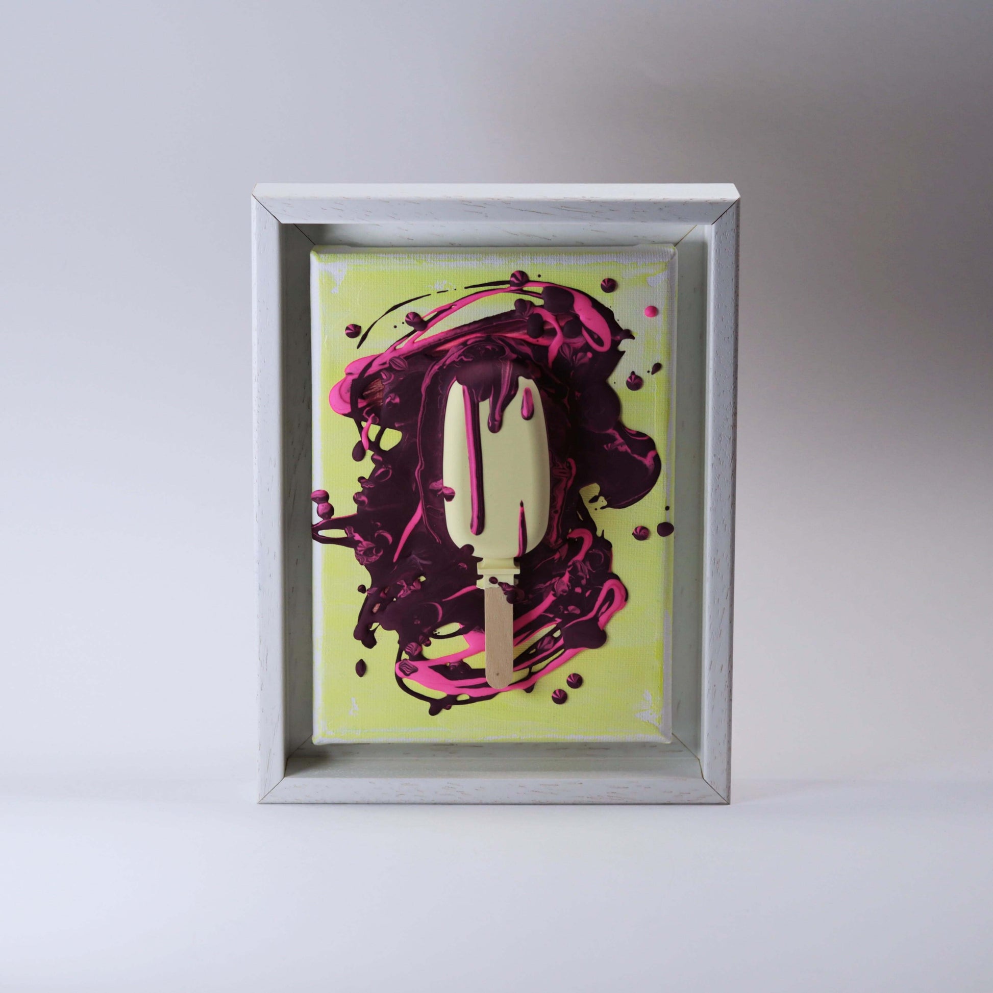 Aus Gießpulver gegossenes 3D Eis, auf Leinwand im Schattenfugenrahmen.