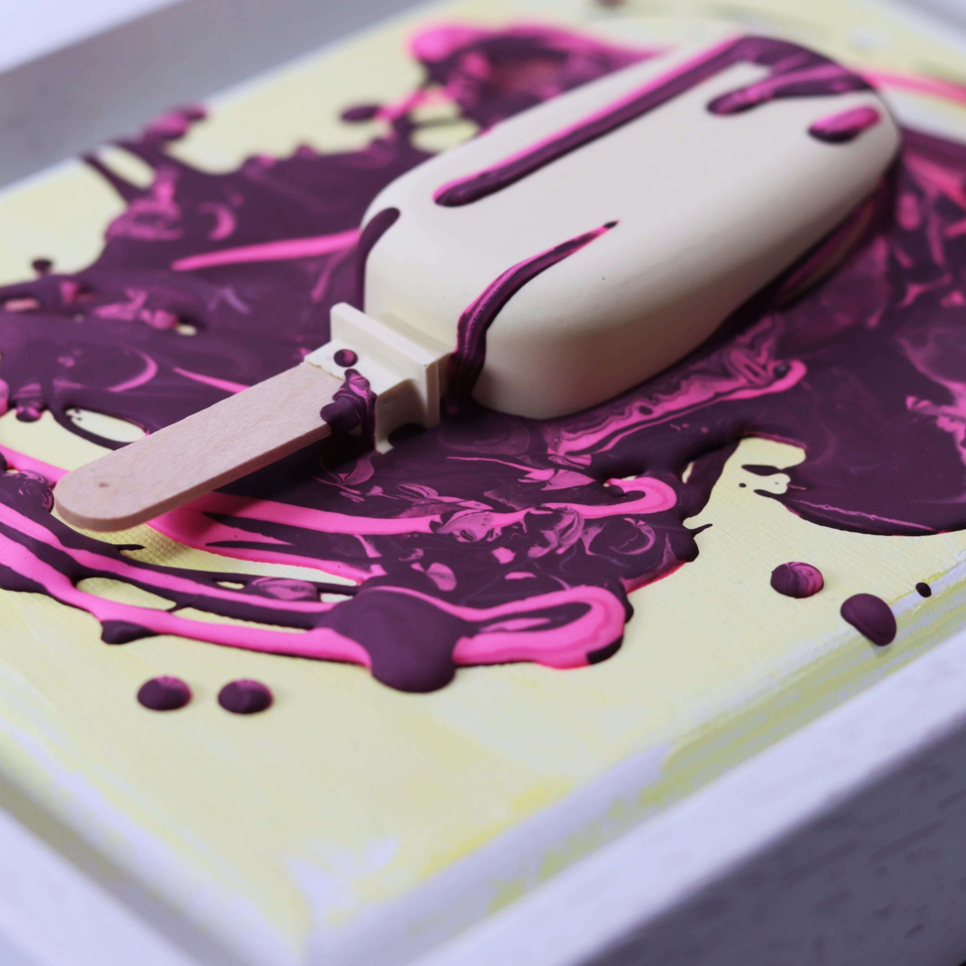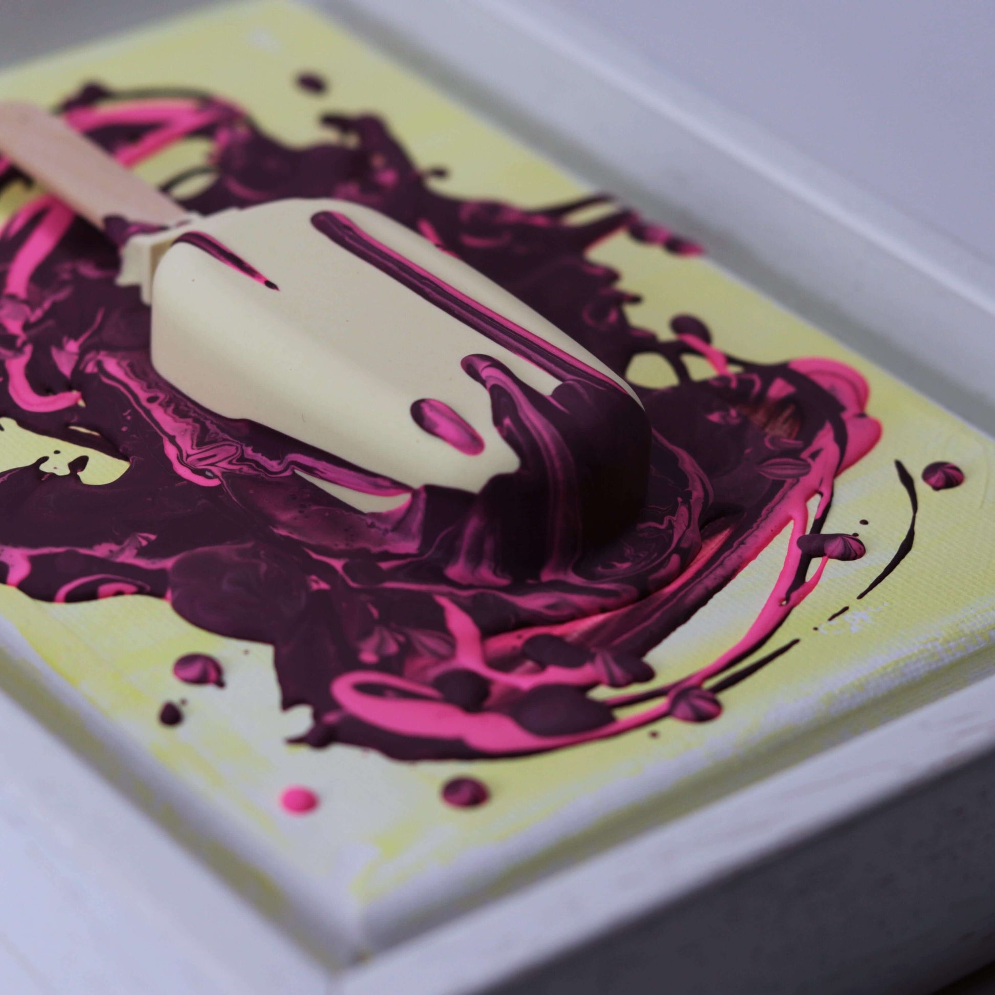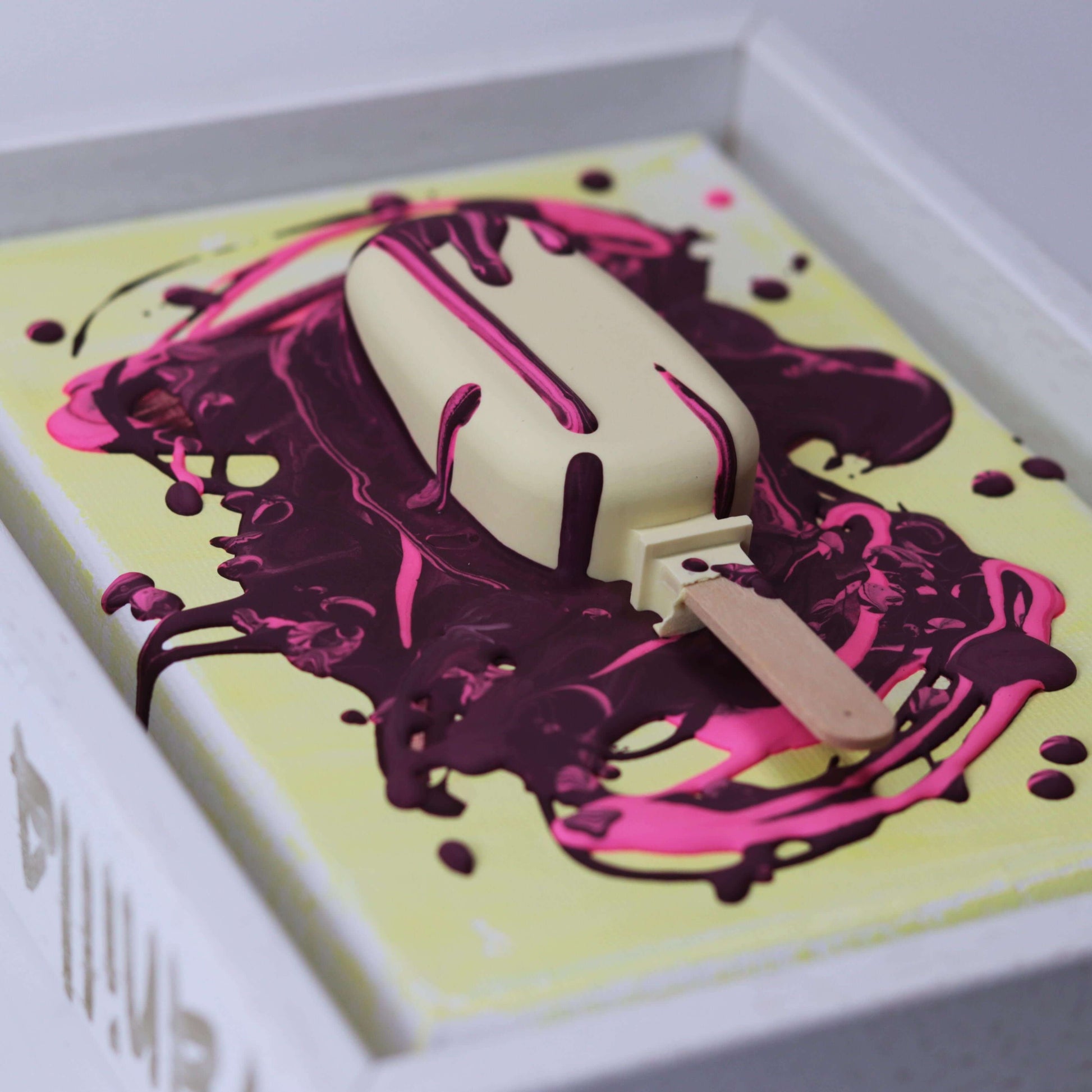 Aus Gießpulver gegossenes 3D Eis, auf Leinwand im Schattenfugenrahmen.